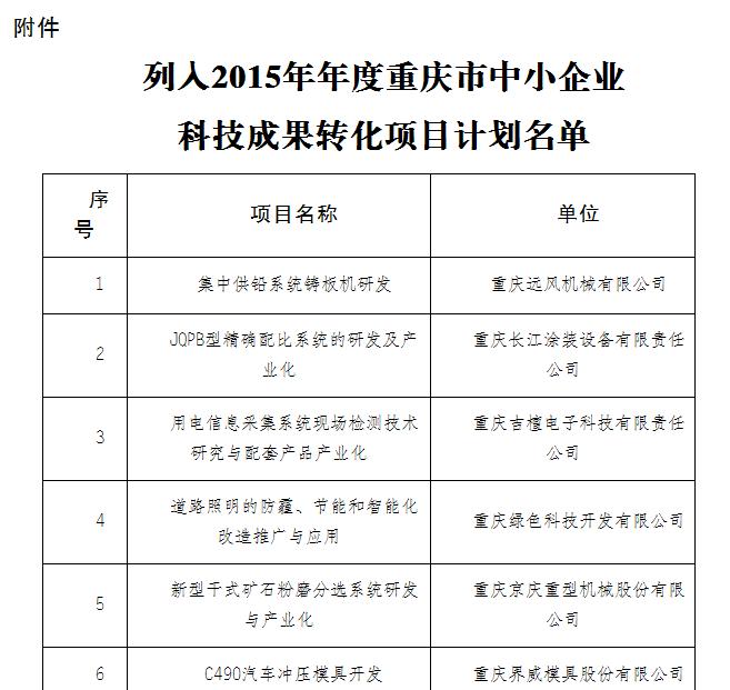 多年以來,重慶城建經濟(集團)重慶綠色科技開發(fā)有限公司與重慶房地產職業(yè)學院進行產學研合作,堅持創(chuàng)新發(fā)展,研發(fā)了“中國創(chuàng)造”“互聯(lián)網+多色溫防霧霾亮度可調智能控制系統(tǒng)及LED智能燈具”技術。該技術自2015年7月22日申報2015年度重慶市中小企業(yè)科技成果轉化項目計劃后,現(xiàn)已于2015年12月21日成功列入科技成果轉化項目計劃。通知文件如下: