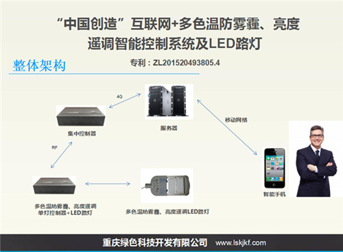 "China creation" Internet plus color temperature and brightness. Anti fog and haze of a new generation of LED lamp applications of intelligent manufacturing technology including time, preset, always and automatic control and other control mode. Based on the ordinary monochromatic temperature LED street lamp control system, using the technology of the Internet, 4G mobile communication through wireless