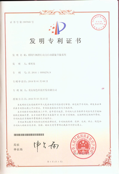 We warmly congratulate the Secretary for research and development of "the use of vehicle sliding power automatic energy storage system" won the national invention patent Brief